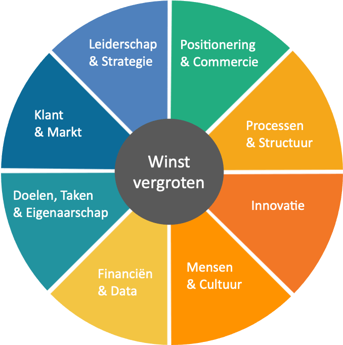 Een strategisch 360° programma voor de directie, waar alle aspecten van het bedrijf geoptimaliseerd worden op basis van bewezen methodieken.